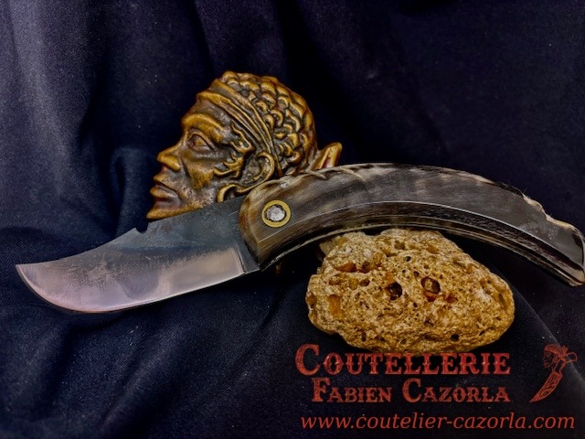 Couteau corse traditionnel fait-main avec manche fabriqué en corne de Chèvre .