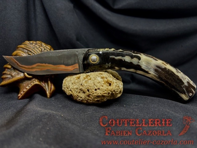 Couteau Corse traditionnel de berger Modèle Cazorla avec Lame Damas Cuivre Nickel 08112510