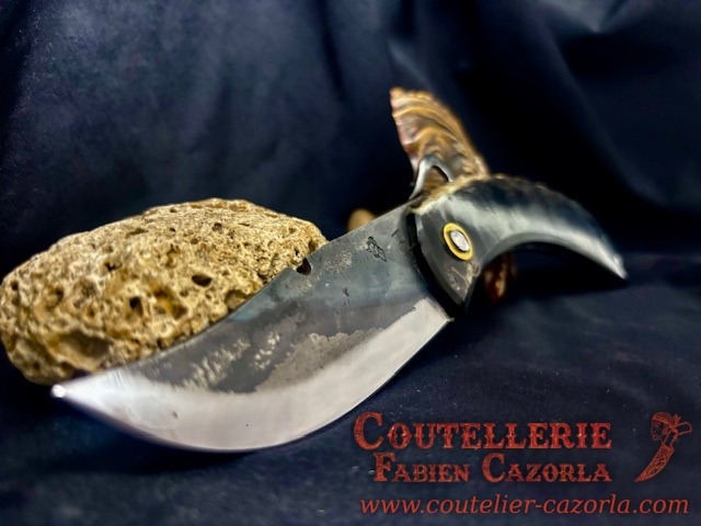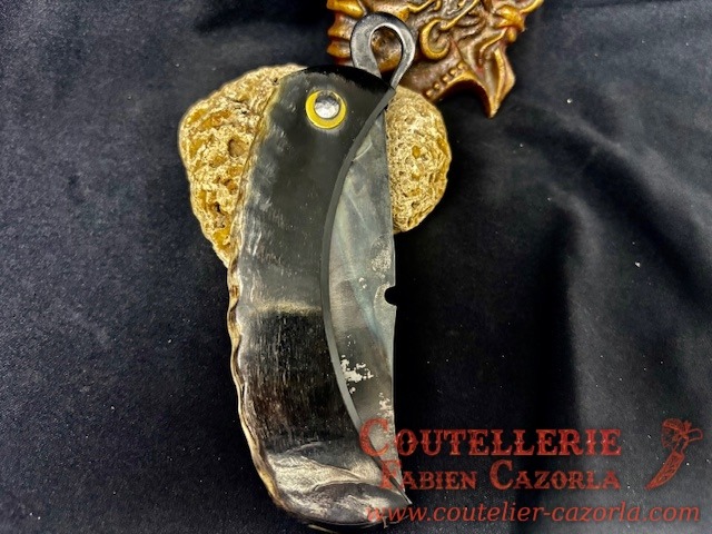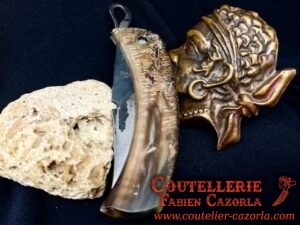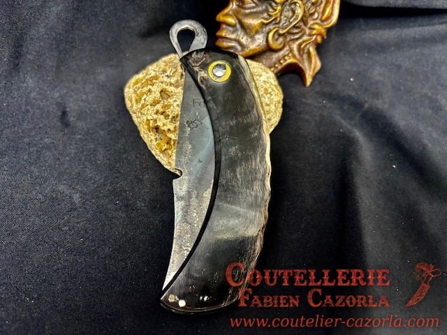 Un Couteau Corse Modèle Piémontais avec manche fabriqué en corne de bélier.