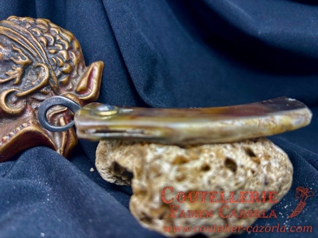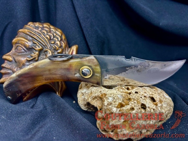Un Couteau artisanal Modèle Fabianu Piémontais de Poche avec manche fabriqué en corne de bélier.