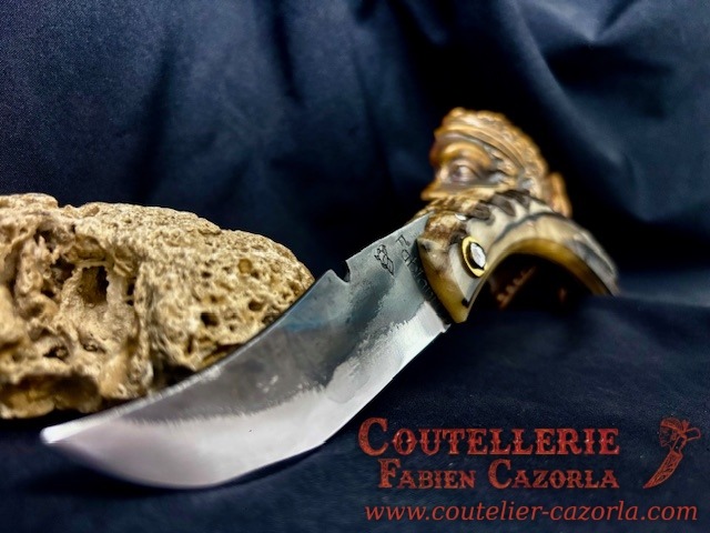 Couteau corse traditionnel   fait-main avec manche fabriqué en corne de Bélier .