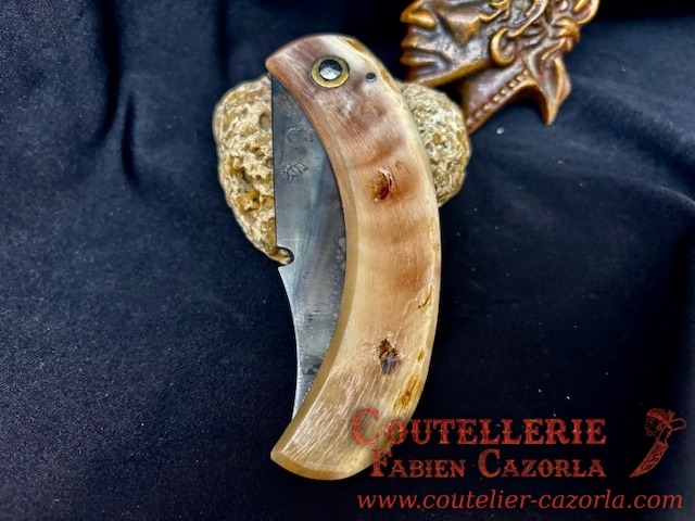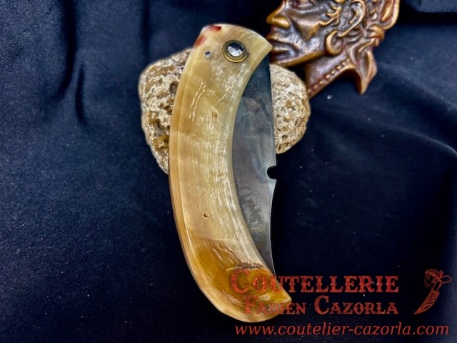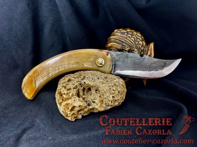 Couteau corse traditionnel fait-main avec manche fabriqué en corne de bélier.
