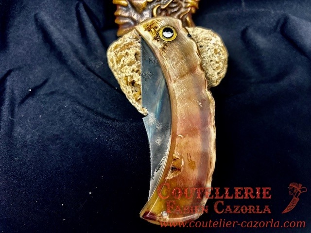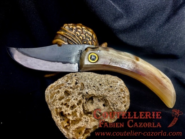 Couteau corse traditionnel   fait-main avec manche fabriqué en Corne de Bélier.