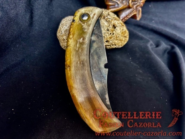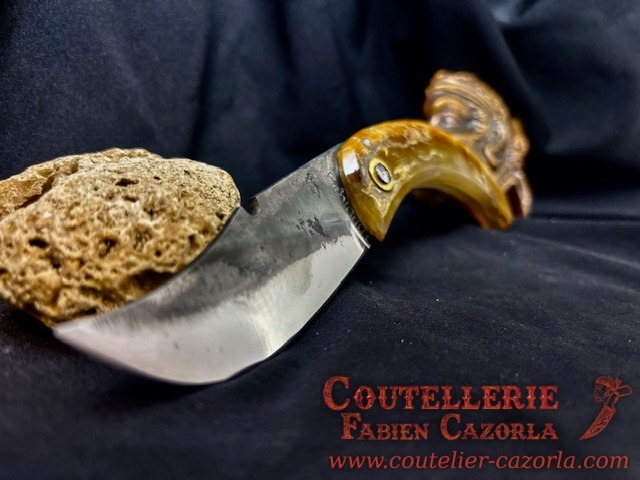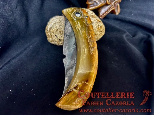 Lame épaisseur de 2 mm avec un manche réalisé en corne de Bélier .