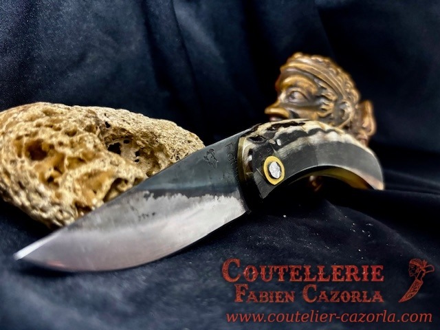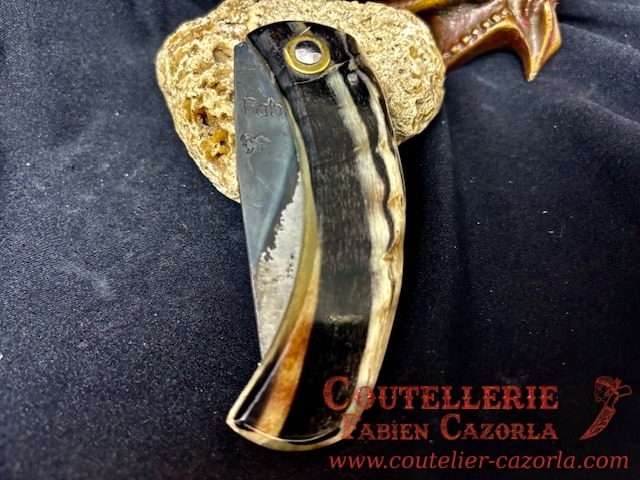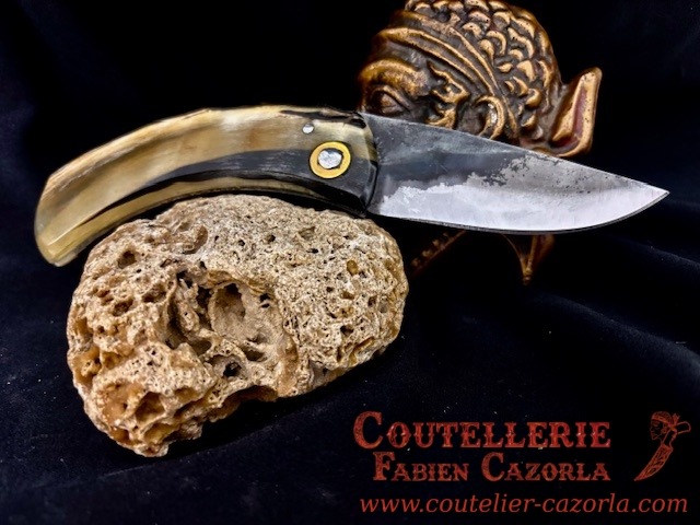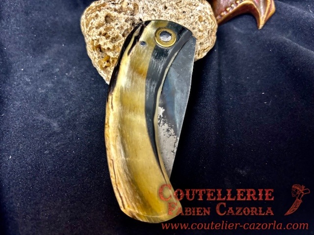 Couteau corse traditionnel en format de poche fait-main avec manche fabriqué en corne de bélier .