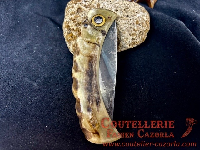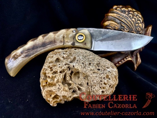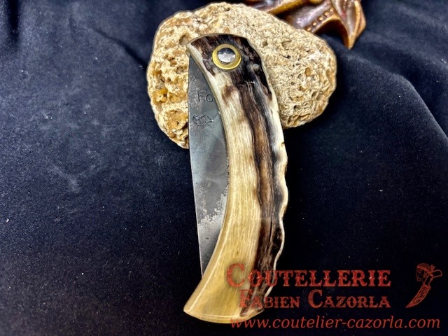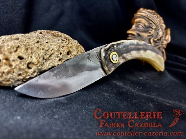 Couteau corse traditionnel en format de poche fait-main avec manche fabriqué en corne de bélier.