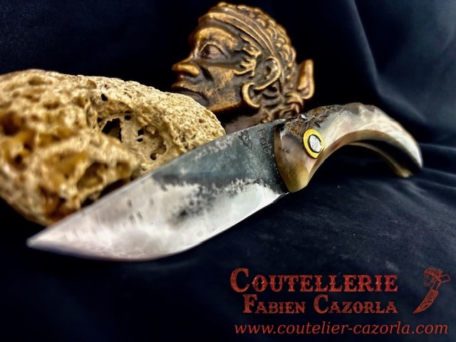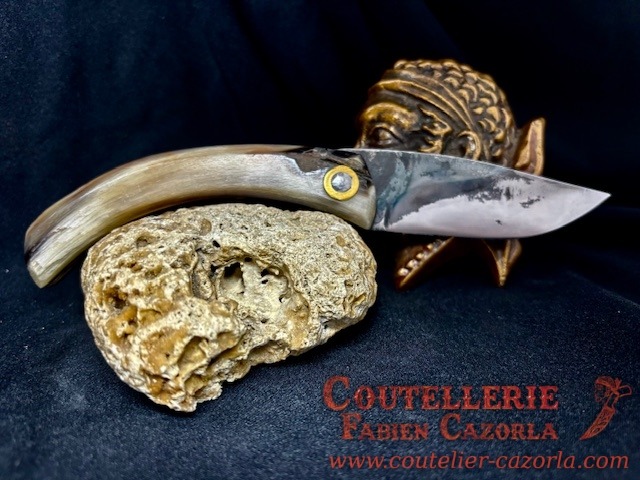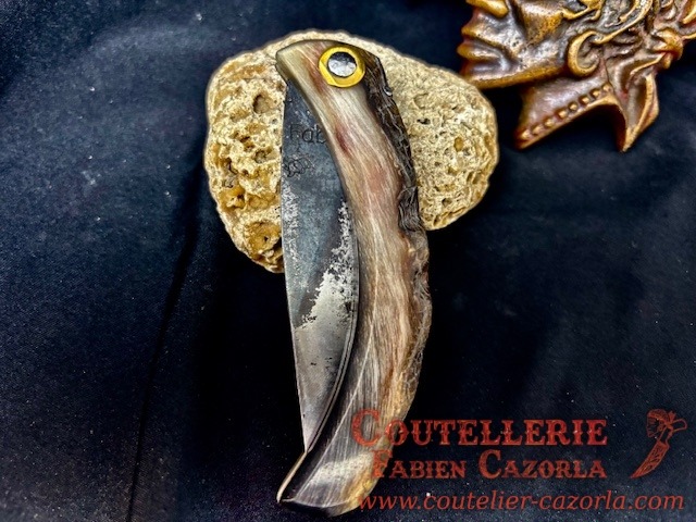 Couteau corse traditionnel en format de poche fait-main avec manche fabriqué en corne de bélier .