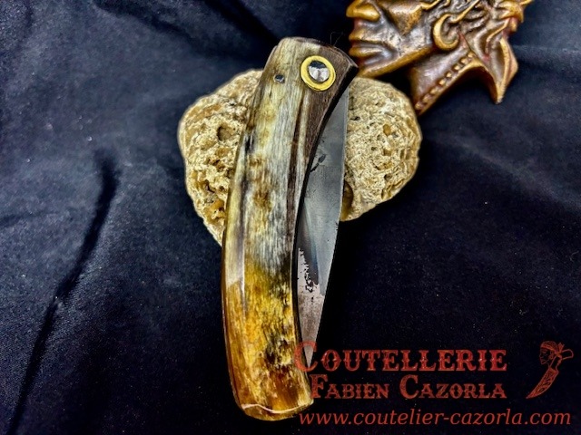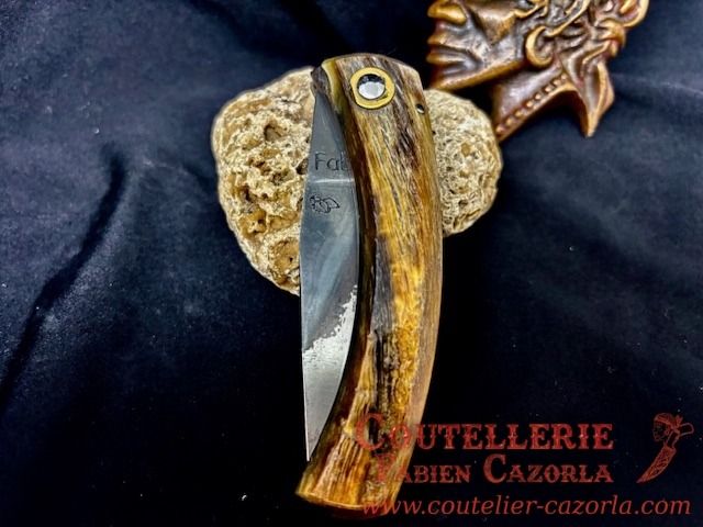 Couteau corse traditionnel en format de poche fait-main avec manche fabriqué en corne de bélier .