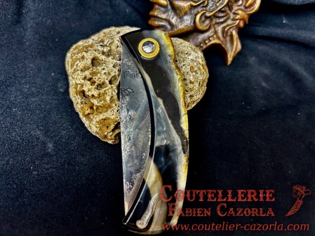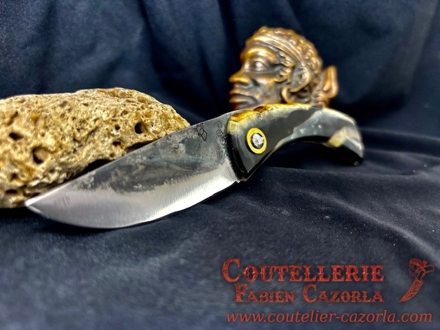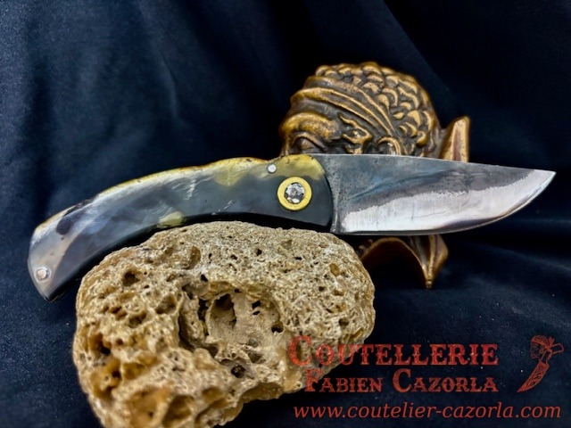 Couteau corse traditionnel en format de poche fait-main avec manche fabriqué en corne de bélier .