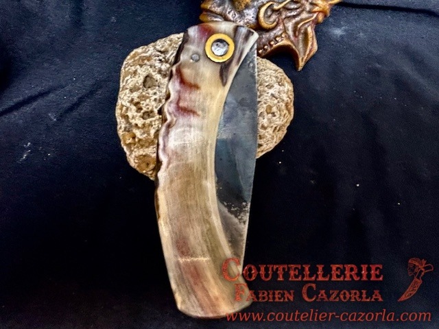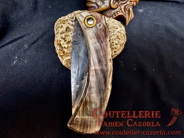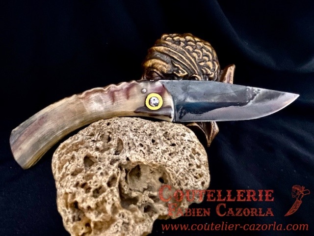 Couteau corse traditionnel en format de poche fait-main avec manche fabriqué en corne de bélier.