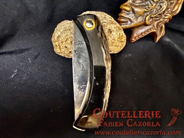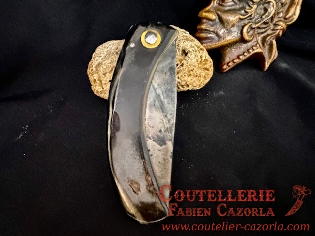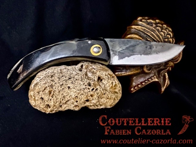 Couteau corse traditionnel   en format de poche fait-main avec manche fabriqué en corne de bélier.