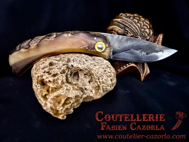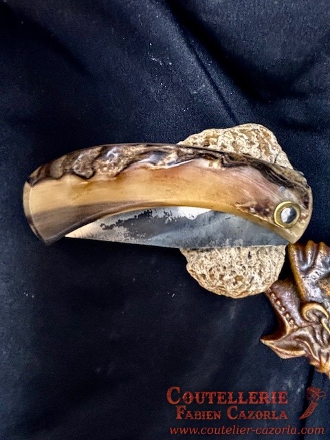 Couteau corse traditionnel en format de poche fait-main avec manche fabriqué en corne de bélier.