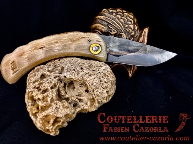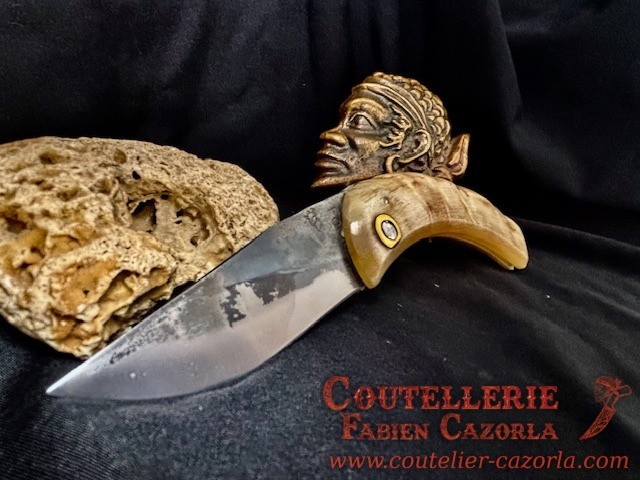 Couteau corse traditionnel en format de poche fait-main avec manche fabriqué en corne de bélier.