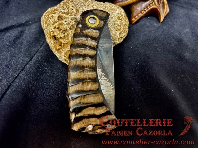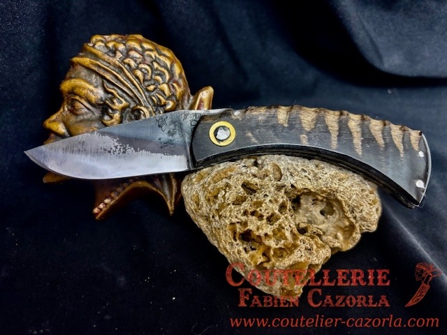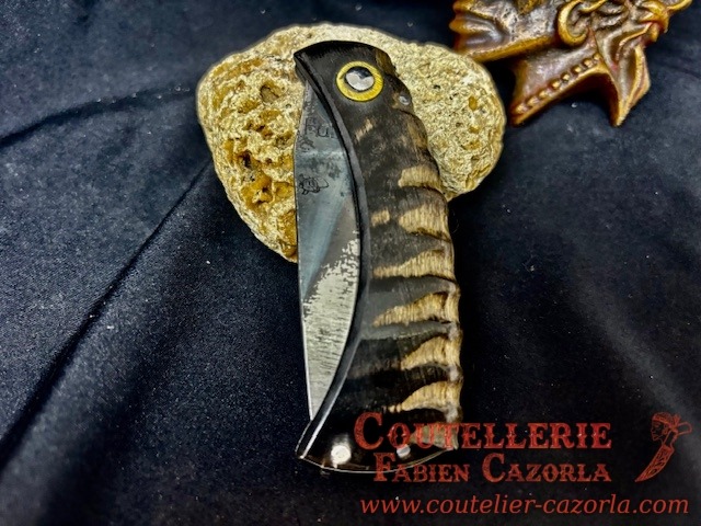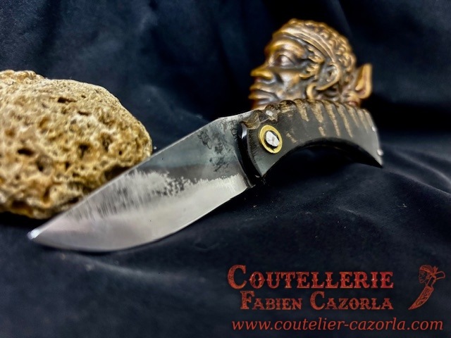 Couteau corse traditionnel en format de poche fait-main avec manche fabriqué en corne de chèvre .