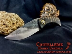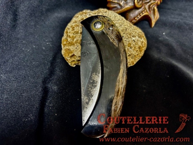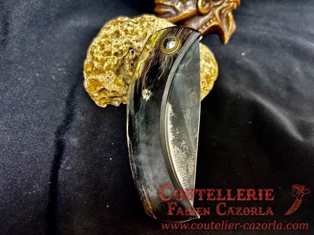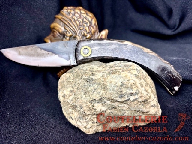 Couteau corse traditionnel en format de poche fait-main avec manche fabriqué en corne de bélier .