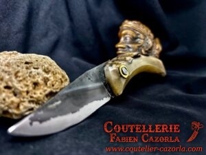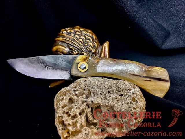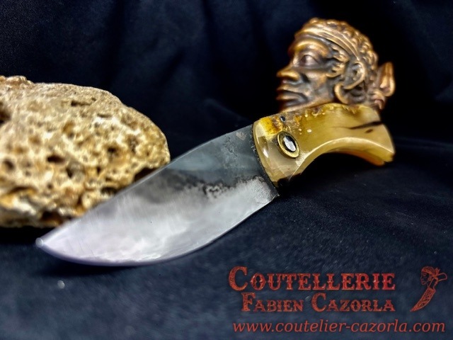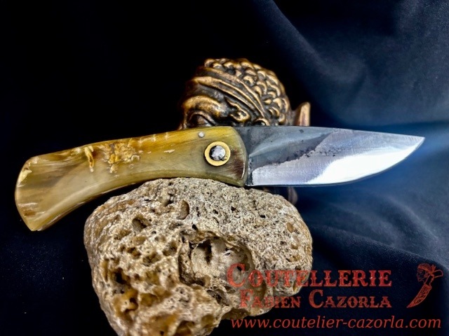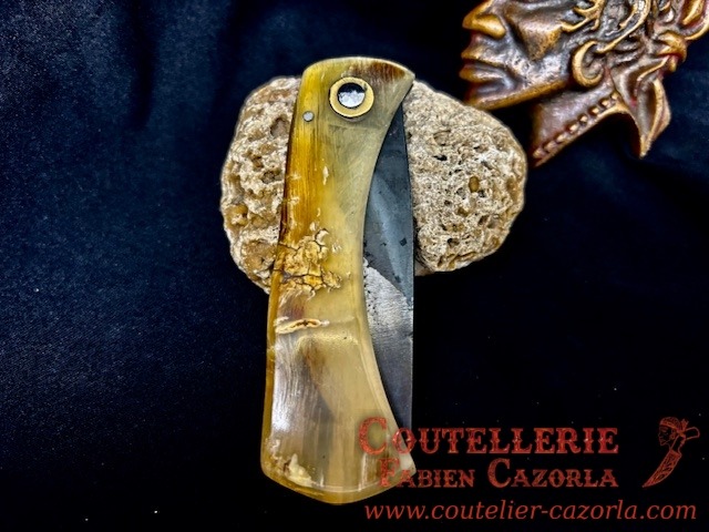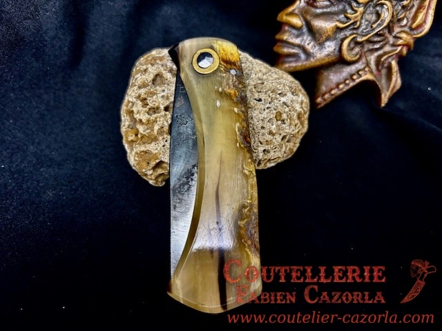 Couteau corse traditionnel en format de poche fait-main avec manche fabriqué en corne de bélier .