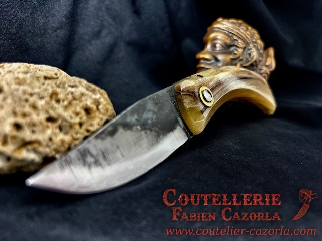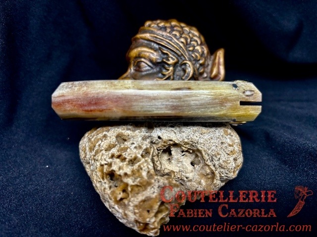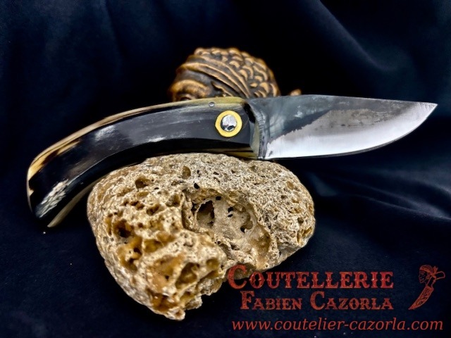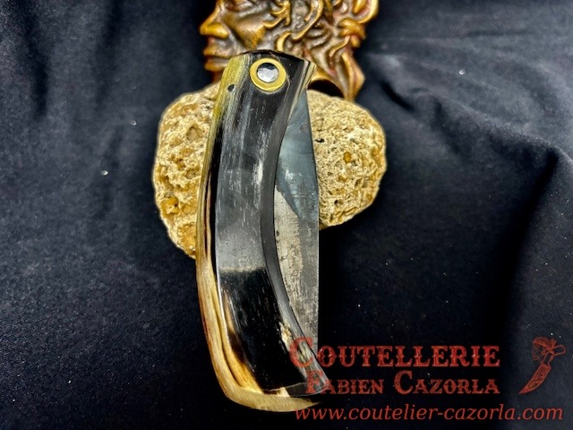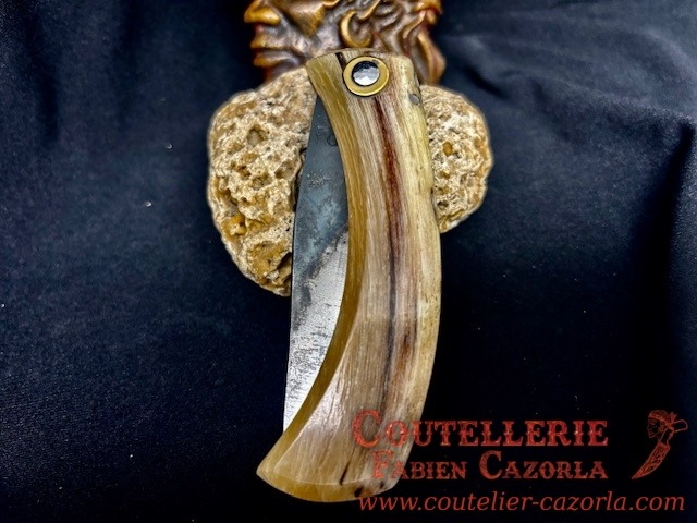 Couteau corse traditionnel en format de poche fait-main avec manche fabriqué en corne de bélier.