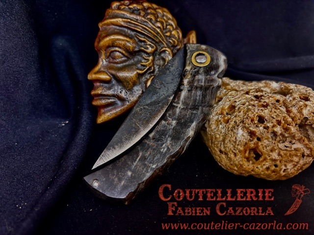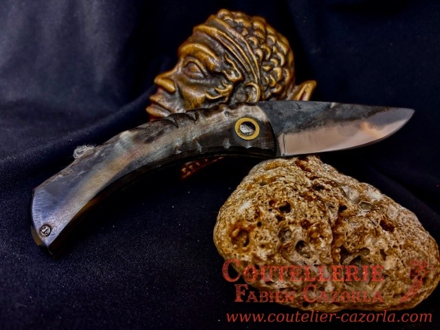 Couteau corse traditionnel en format de poche fait-main avec manche fabriqué en corne de bélier.