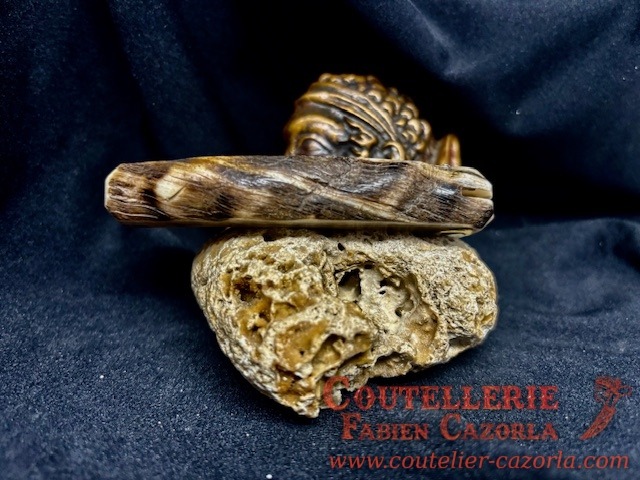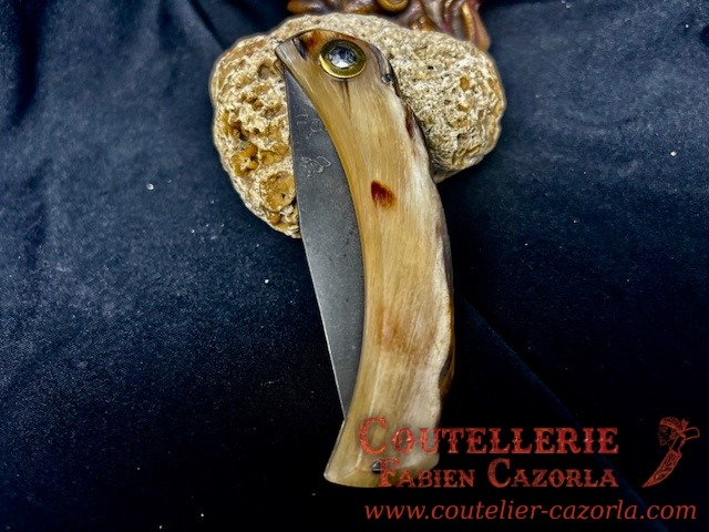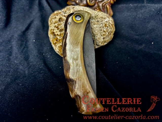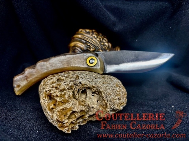 Couteau corse traditionnel en format de poche fait-main avec manche fabriqué en corne de bélier.