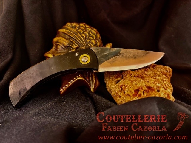 Couteau corse traditionnel en format de poche fait-main avec manche fabriqué en corne de chèvre.