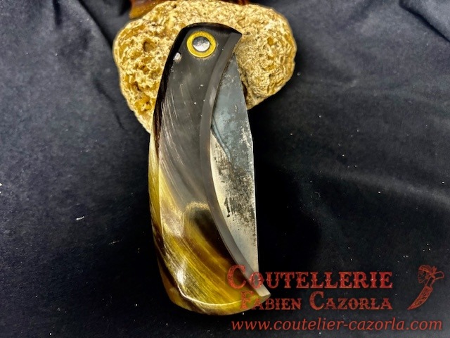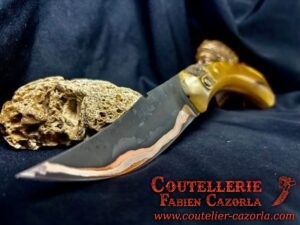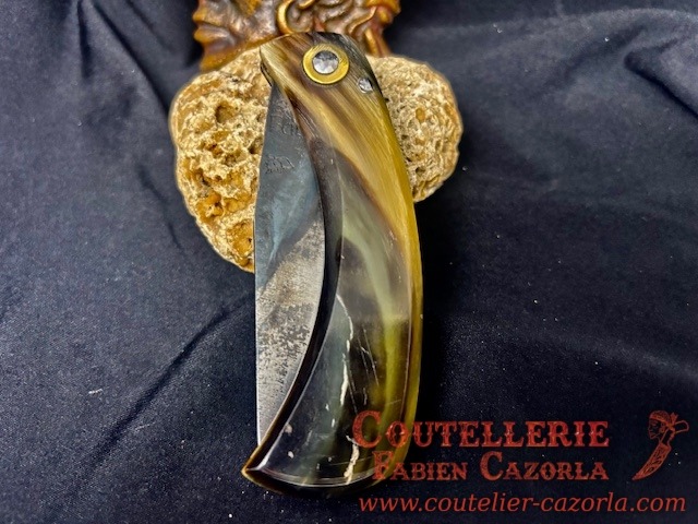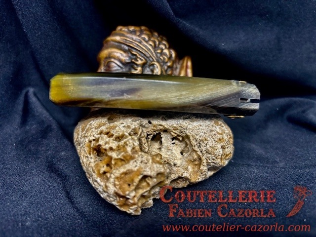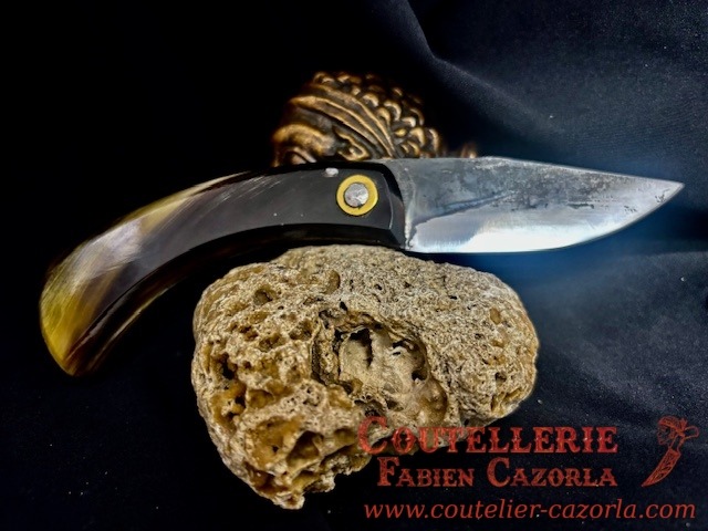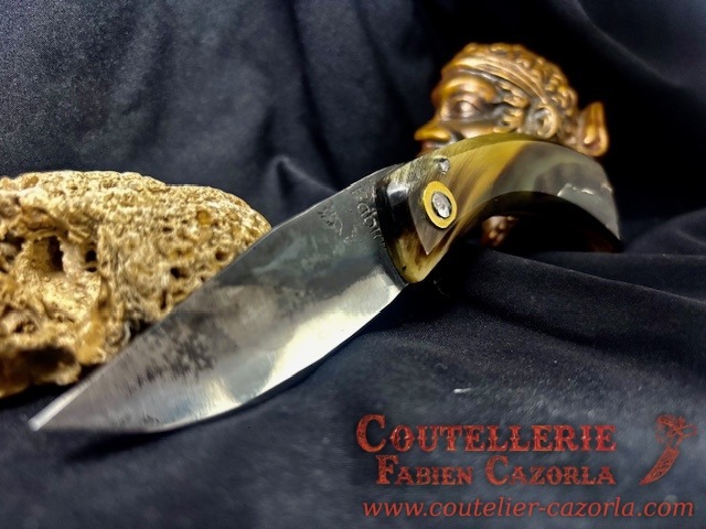 Couteau corse traditionnel en format de poche fait-main avec manche fabriqué en corne de bélier.