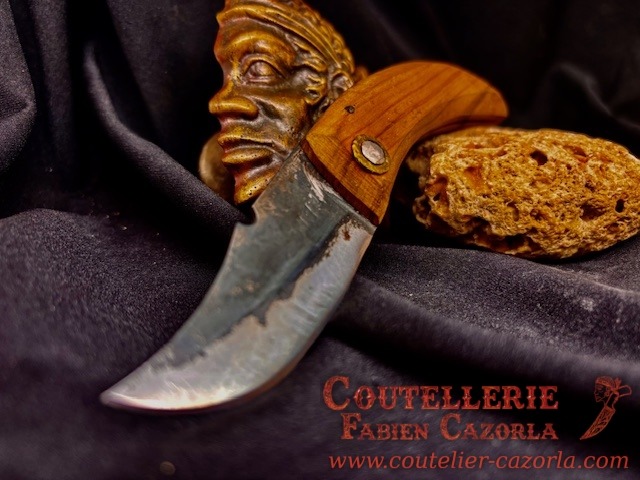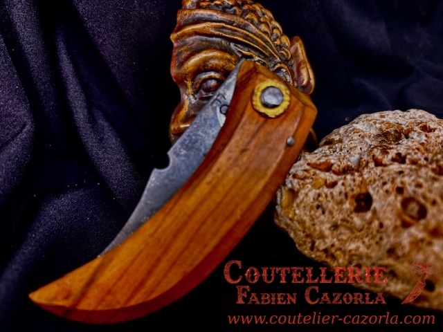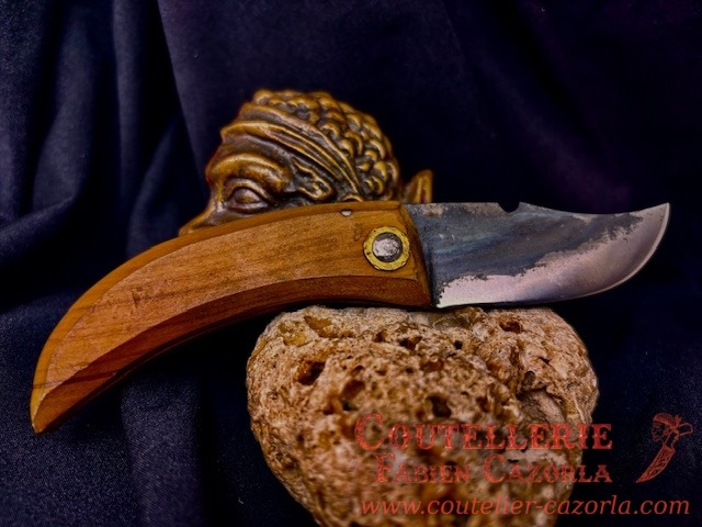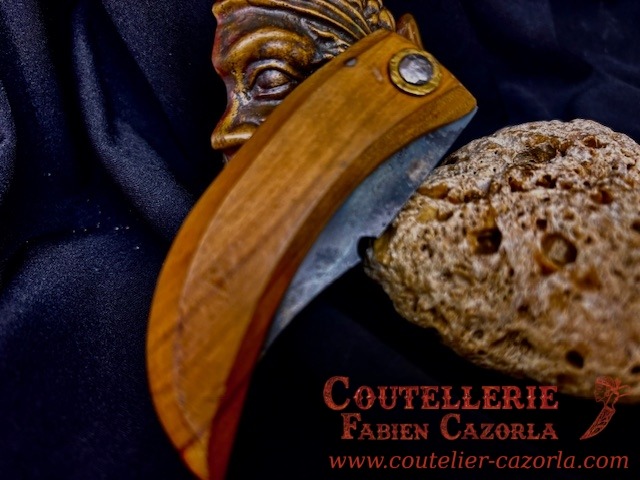 Couteau corse traditionnel en format de poche fait-main avec manche fabriqué en Bois d’olivier.