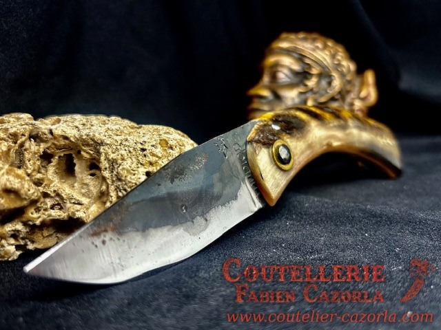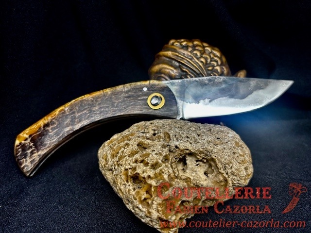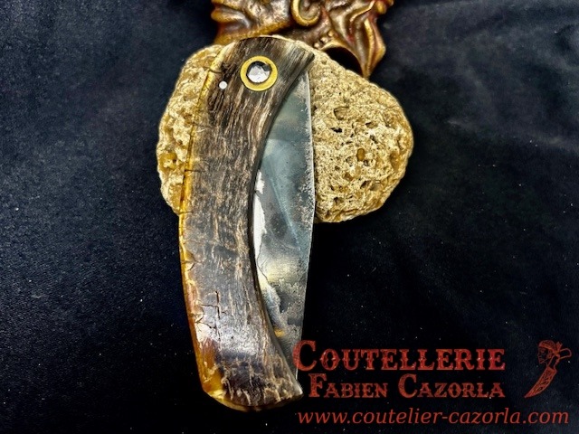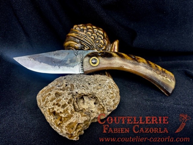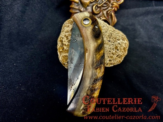 Couteau corse traditionnel en format de poche fait-main avec manche fabriqué en corne de bélier.