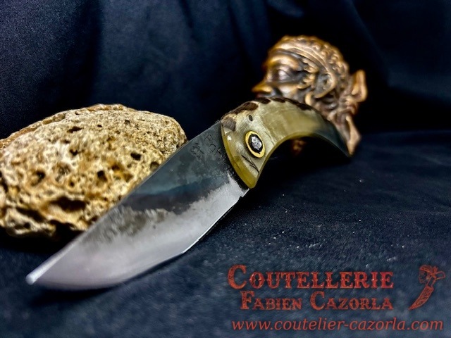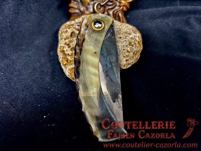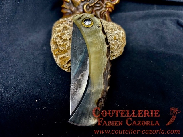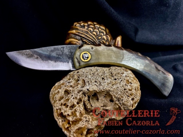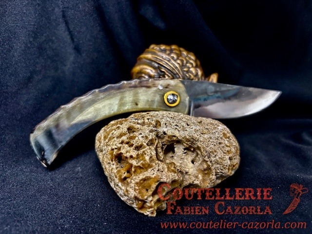Couteau corse traditionnel en format de poche fait-main avec manche fabriqué en corne de bélier.