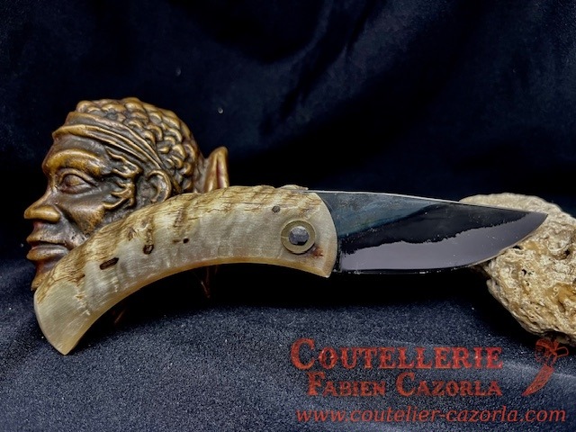 Couteau corse traditionnel en format de poche fait-main avec manche fabriqué en corne de bélier.