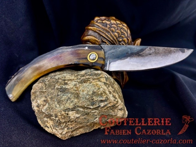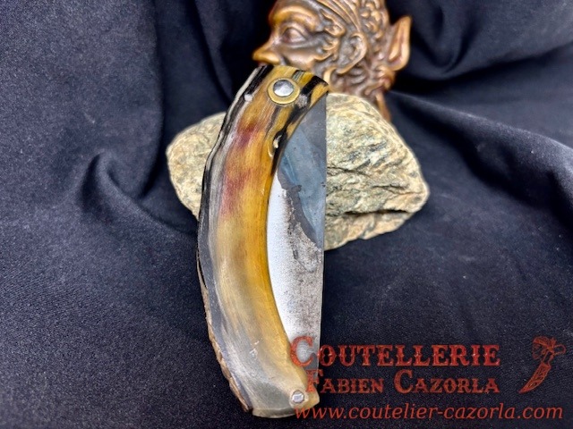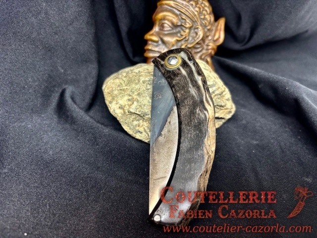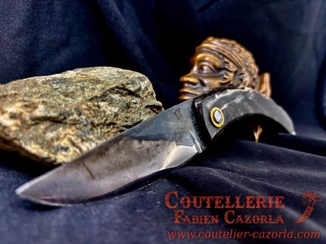 Couteau corse traditionnel en format de poche fait-main avec manche fabriqué en corne de bélier.