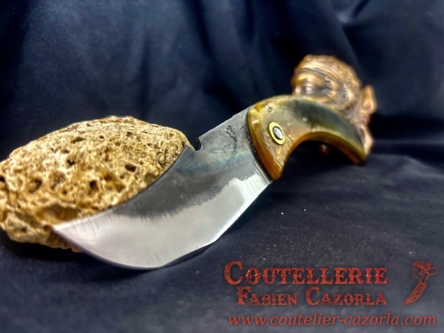Couteau corse traditionnel fait-main avec manche fabriqué en corne de bélier.