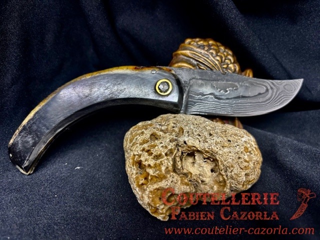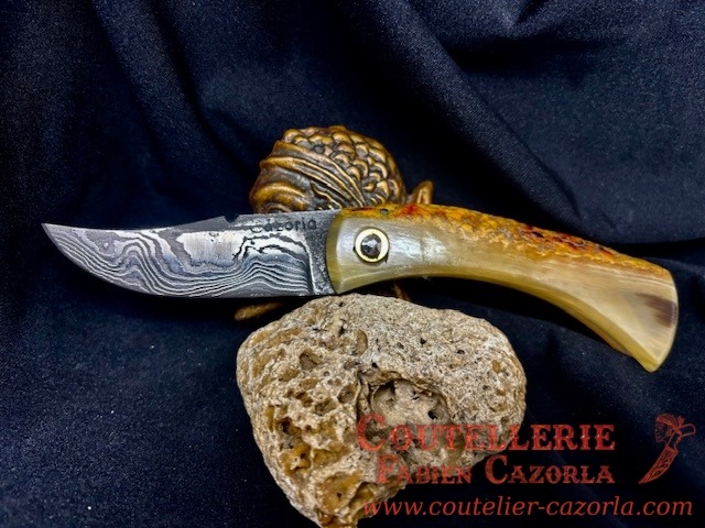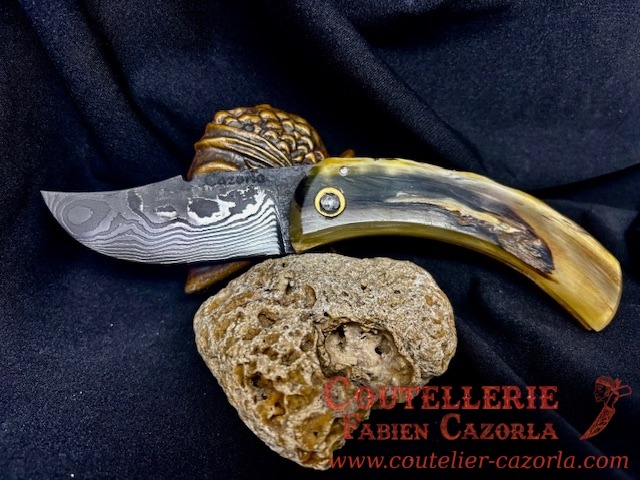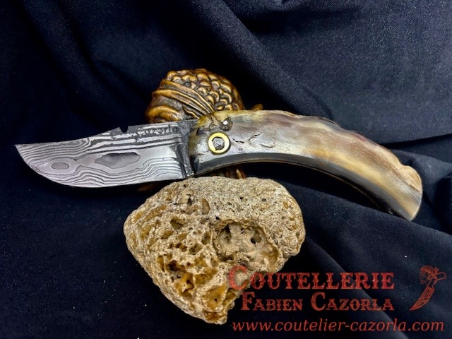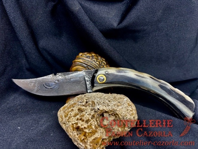 Couteau Corse traditionnel de berger Modèle Cazorla avec Lame Damas 06102548