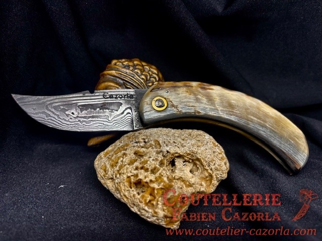 Couteau Corse traditionnel de berger Modèle Cazorla avec Lame Damas 06102550